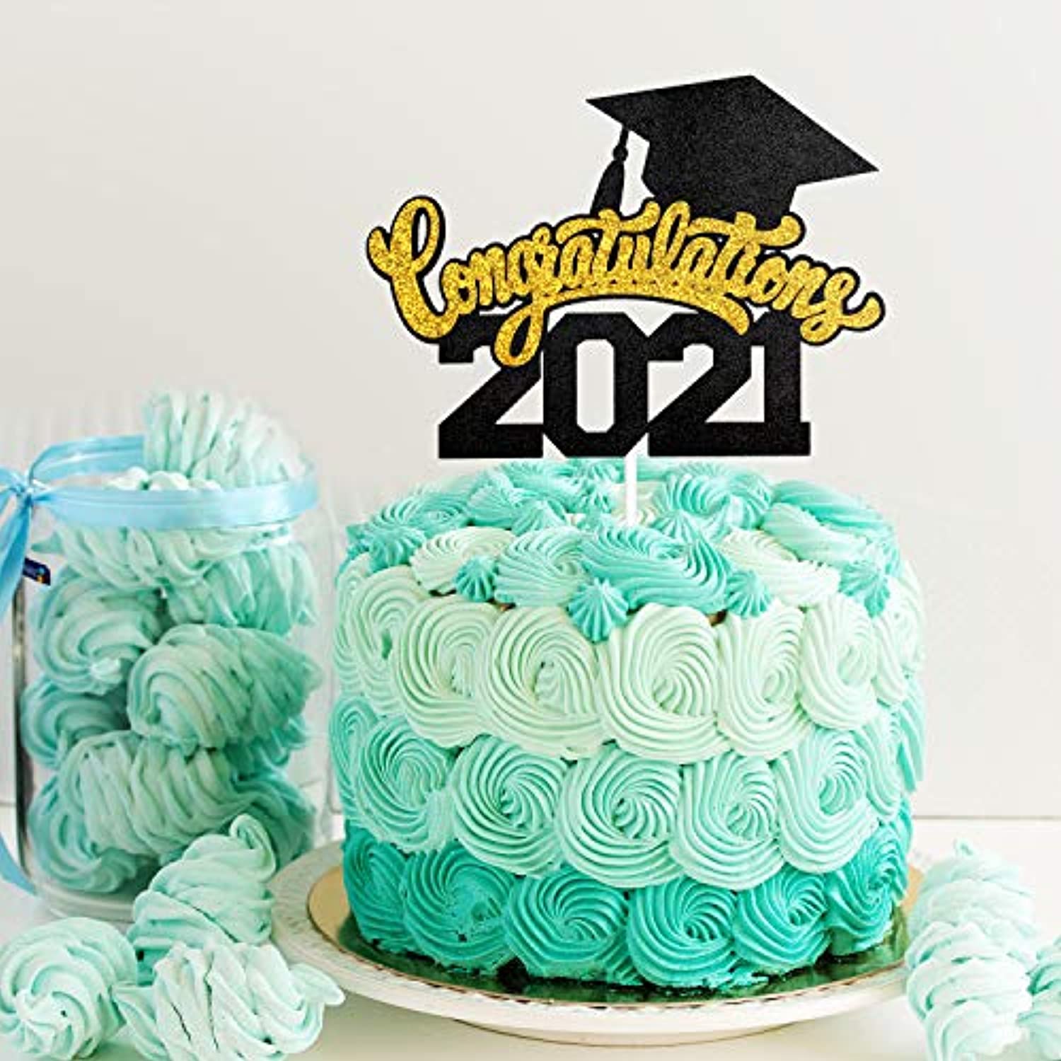 Congratulations 2021 Graduation Cake Topper Class Of 2021 Grad Party Black Glitter Cake Supplies Congrats High School College Graduation Party Decoration Walmart Com